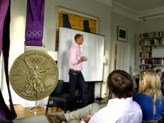 On the 4th of May 2014, St Peter’s had the extraordinary pleasure of hosting GB rower Alex Gregory at the Master’s Canal House. Alex won gold at London 2012 in the cox-less four. In front of an audience including The Master Mark Damazer, London Bronze Medalist Constantine Louloudis, rowers of St Peter’s College Boat Club and other guests, Alex told the story of his rowing career. He gave a very personal account of how he overcame the struggles of his earlier career to finally succeed in rowing by winning world cup titles, and finally Olympic Gold. We are extremely grateful to Alex for taking the time to tell us his story and even answering individual questions. This will be a great motivation for SPCBC rowers to improve their own performance.